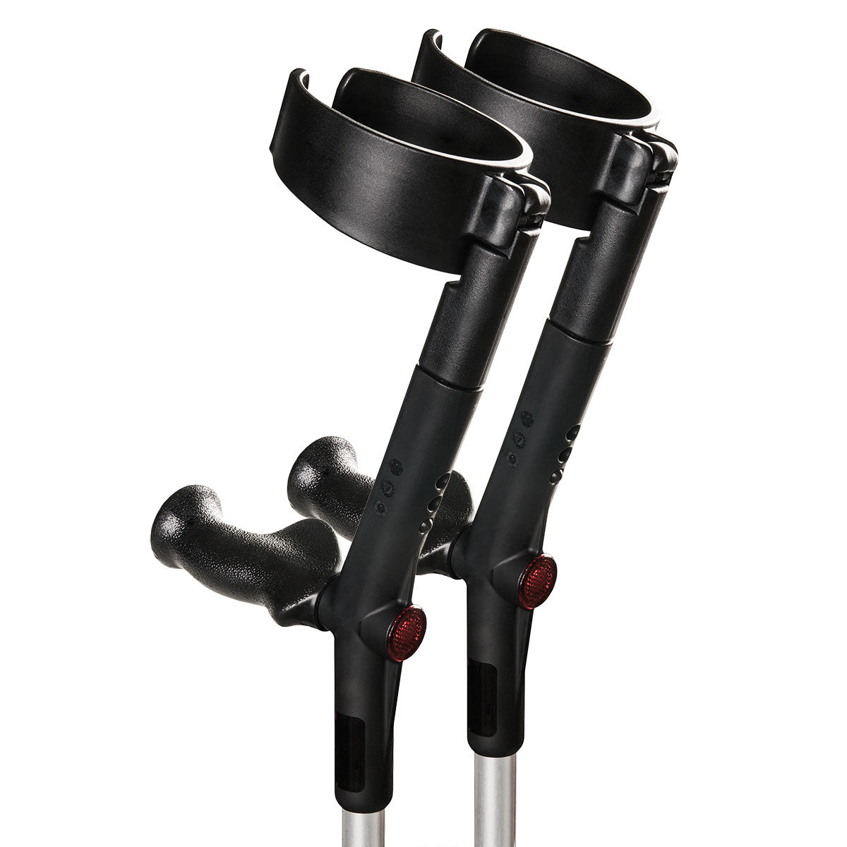 The Rebotec Safe-In-Anatom-Soft are height adjustable forearm crutches with partially enclosed cuff and flexible hinge system. Available in a variety of colors. Sold as a pair (2pc)